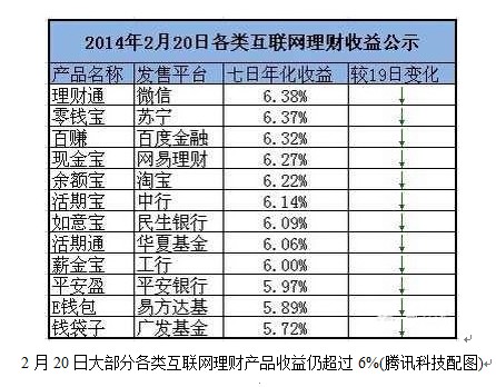 如馬年春節前各類互聯網金融理財產品收益率上漲。1月26日,微信理財7天年化收益率達7.902%。余額寶7日年化收益率在6.4%-6.45%之間。春節后這種增長態勢未能持續,但從2月4日到2月7日,余額寶7日年化收益率依然在6.04%-6.09%之間。